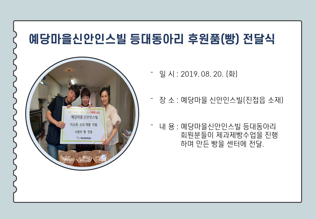 북부희망케어센터는 지난 8월 지역사회와 다양한 사업을 진행하였습니다. 항상 북부희망케어센터와 지역사회를 위해 나눔을 해주시는 모든 분께 감사드립니다. 자세한 내용은 이미지를 참고해주세요.