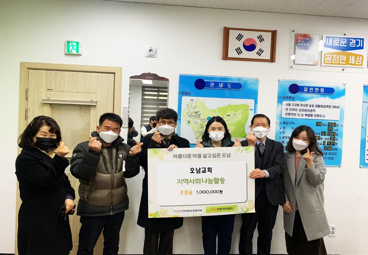 북부희망케어센터에서는 오랜 기간동안 인연을 맺고 있는 오남교회에서 따뜻한 나눔이 진행되었습니다. 제칠일안식일예수재림교 오남교회는 2013년부터 꾸준하게 밑반찬 조리 및 전달 봉사를 진행해주셨고 현재는 자체적으로 지역의 어려우신분들을 위해 밑반찬 봉사를 하고 계십니다. 금일은 오남읍 취약계층을 위해 100만원을 기부해주셨고, 전달된 후원금은 오남지역의 도움이 필요한 이웃에게 생계비로 사용될 예정입니다. 어려운 시기에도 따뜻한 나눔활동에 동참해주셔서 정말 감사드립니다.