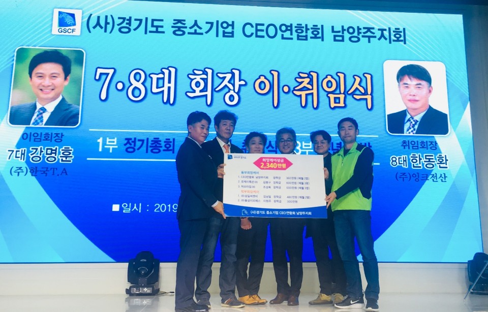 (사) 경기도중소기업 ceo연합회 (회장 한동환)는7.8대 회장 이.취임식에서에서 동부희망케어센터에 후원금 약정서를 전달했습니다. 전달된 약정서는 2020년 동부권역의 아동을 위하여 CEO연합회 남양주지회 360만원, 유케이특판(주) (대표 김병구) 600만원, 허브타임(주)(대표 조성옥) 600만원을 후원하였으며, 당일 약정된 후원금은 지역 내 저소득 가정의 아동·청소년에게 매월 정기적으로 지급될 예정입니다.