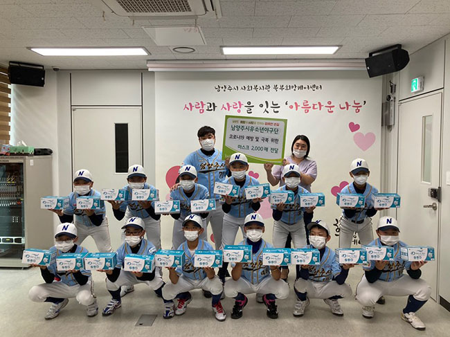 남양주유소년야구단(감독 허성규)에서는 지역사회 소외된 이웃의 코로나19 예방 및 극복을 위한 마스크 2,000매를 남양주시사회복지관 북부희망케어센터에 전달했다. 이번 후원은 남양주시유소년야구단의 아이들과 학부모가 본인들이 받은 마스크를 지역 사회에 더 어려운 이웃에게 전달하기로 결정해 성사됐으며, 이날 기부된 마스크는 북부희망케어센터를 통해 북부권역 저소득 소외계층에게 전달될 예정이다. 허성규 감독은 "아이들을위해 기부된 물품을 다시 지역사회 소외계층에게 전달하게 돼 더욱 뿌듯하다. 이웃을 위해 따뜻한 마음으로 참여해준 아이들과 학부모님들께 진심으로 감사의 말씀을 드리고 싶다. 앞으로도 북부희망케어센터와 함께 지역사회를 위해 다양한 나눔에 동참할 수 있도록 최선을 다하겠다."고 밝혔다. 한편, 남양주시유소년야구단은 지난 2019년부터 북부희망케어센터와 함께 나눔활동에 참여하고 있다.