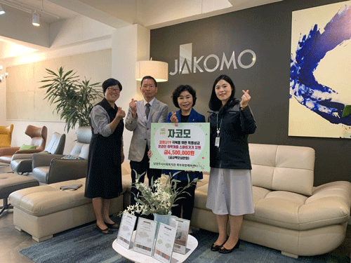 주식회사 자코모(대표 박경분)는 코로나19 극복을 위한 특별성금 450만원을 북부희망케어센터에 전달했다. 이번 성금은 코로나19로 인한 지역사회의 어려움을 해소하고 코로나19 확산 방지를 위해 (주)자코모에서 마련했다. 박경분 (주)자코모 대표이사는 "코로나19로 지역경제가 침체되고 소상공인이 생계의 어려움을 겪는다고 들었다. 특히 경제적으로 더 어려움을 겪는 취약계층에 도움이 되고자 특별성금을 준비했다."고 말했다. 한편, 이번 기부금은 남양주시의 코로나19 극복을 위한 '온라인 취약계층 스마트 기기 지원 사업'에 쓰일 예정이다.