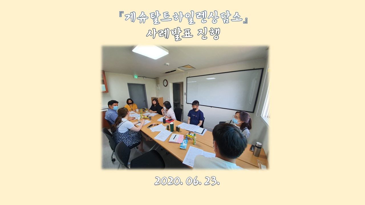 동부희망케어센터 동부희망케어센터, 게슈탈트하일렌상담소 사례발표 진행 등록일자 2020-06-26 조회 178 내용 6월 23일 게슈탈트하일렌상담소와 동부희망케어센터는 사례발표를 진행했다. 다양한 치료욕구를 갖고 있는 이용자 분들 상담치료 과정에 대한 모니터링을 통해 빠르게 문제 상황에 대처할 수 있도록 사례발표를 진행했다. 첨부파일 프레젠테이션2.jpg [ Size : 96.76KB, Down : 70 ] 미리보기 다운로드 목록보기