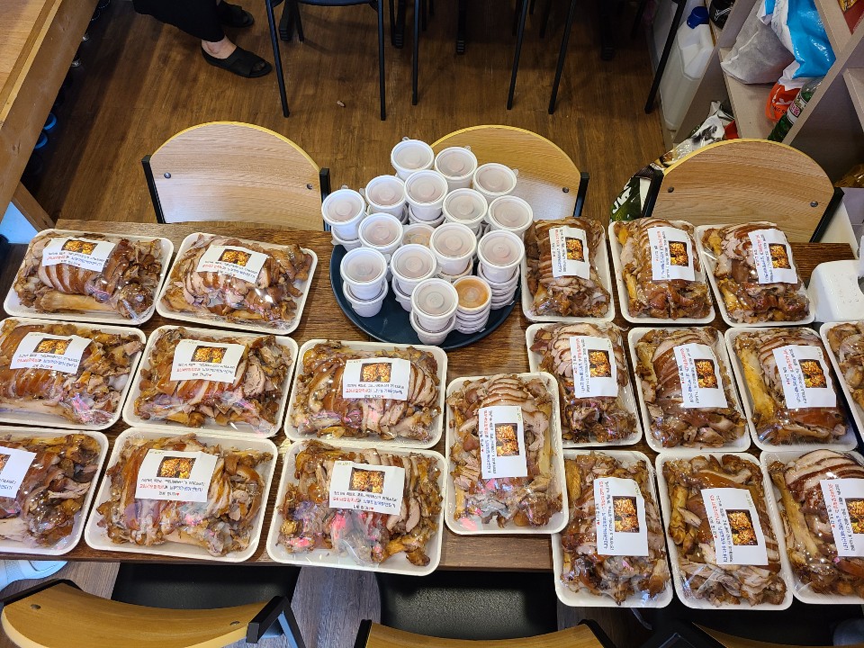 모이세오향족발에서 정성껏 준비한 족발세트는 사회복지사의 가정방문을 통해 금곡동 취약계층(한부모, 조손 등) 20가구에게 지원되었지요!