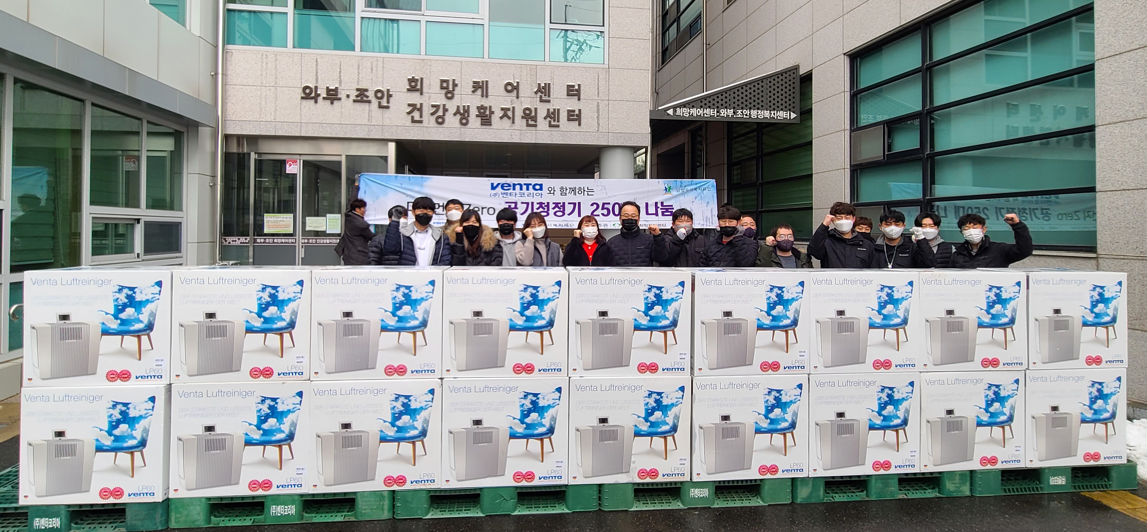㈜벤타코리아(대표 김대현)는 금일, 남양주시 전권역 취약계층을 위해 공기청정기 250대(2억5천만원 상당)를 남양주시복지재단(대표이사 우상현)에 기탁해주셨습니다.