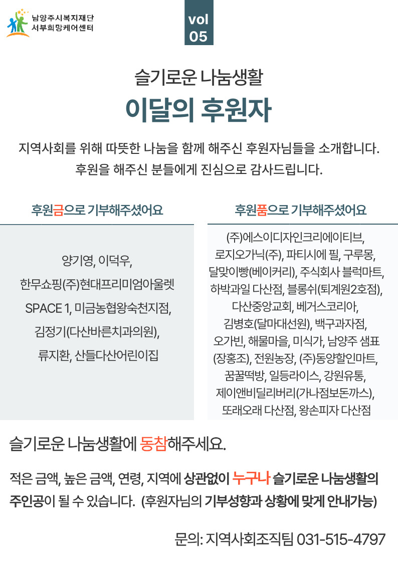 서부희망케어센터 서부희망케어센터 / 슬기로운 나눔생활, 이달의 후원자_5월
