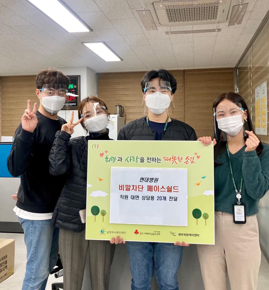 북부희망케어센터 북부희망케어센터, 현대병원 비말차단 페이스 쉴드 전달