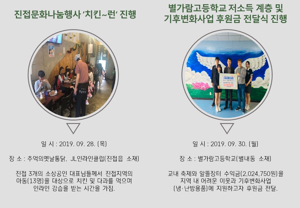 북부희망케어센터는 지난 9월 지역사회와 다양한 사업을 진행하였습니다. 항상 북부희망케어센터와 지역사회를 위해 나눔을 해주시는 모든 분께 감사드립니다. 자세한 내용은 이미지를 참고해주세요.