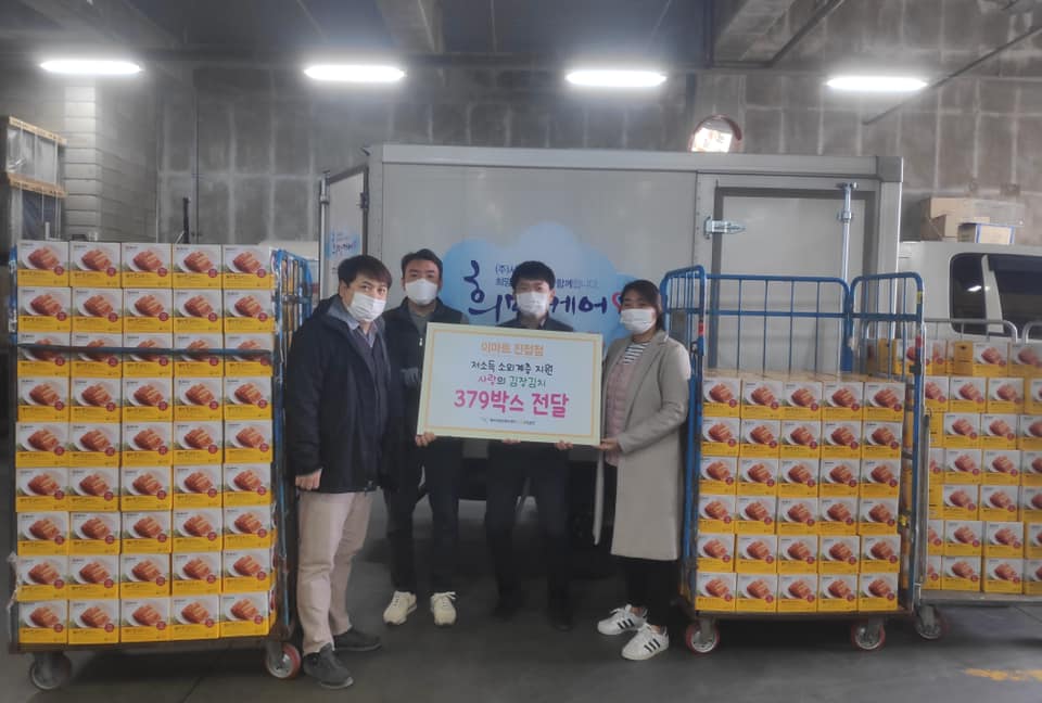 겨울을 맞이하여 북부권역의 노인맞춤돌봄 어르신들을 위해 이마트 진접점(점장 강희석)에서 사랑의 김장김치 379박스를 전달해주셨다. 지원 받은 김치는 식사 준비가 어려우신 어르신들을 대상으로 각 지역에서 활동하는 생활지원사 선생님들께서 직접 전달해주었다. * 코로나 단계 격상 전 진행한 사업임을 알려드립니다.
