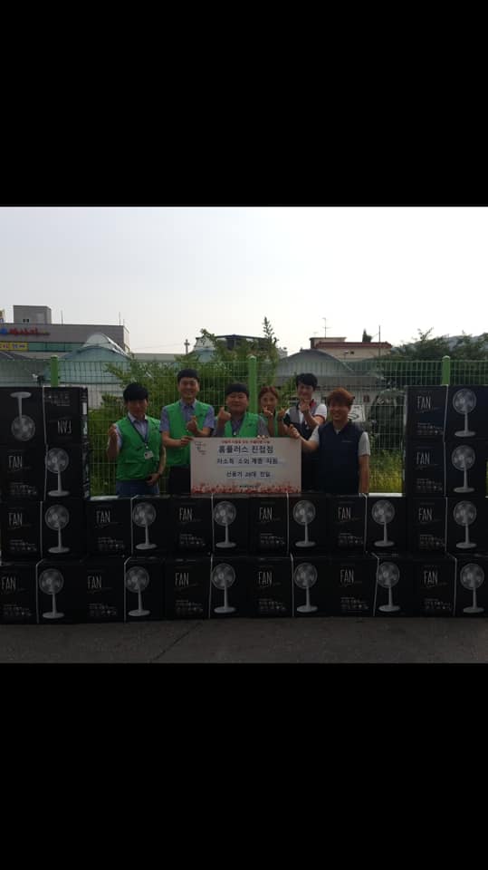 지난 24일(월), 홈플러스 진접점 봉사 동아리에서 북부희망케어센터(센터장 류시혁)에 여름물품을 후원하였다. 홈플러스 진접점에서는 북부희망케어센터에서 진행하는 기후변화사업, 설꾸러미 포장 등 많은 활동을 해주고 계신다. 지난 24일에는 다가올 폭염에 대비해 선풍기 28대(100만원 상당)를 흔쾌히 지역사회 소외계층을 위해 사용해 달라며 전달해주셨다. 전달해주신 선풍기는 기후변화사업 하계물품으로 사용할 예정이다.