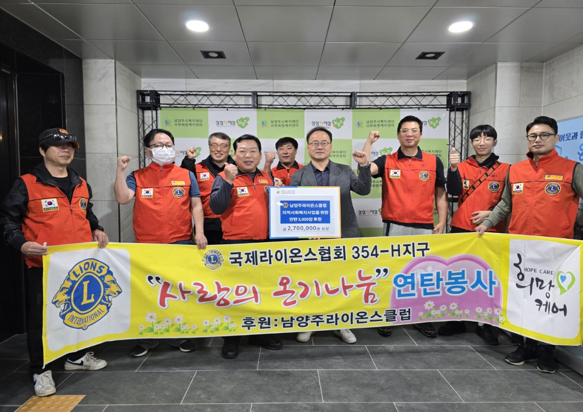 *관련기사 링크 : 국제라이온스협회 354-H지구 남양주 라이온스클럽, 서부희망케어센터에 연탄 3,000장 기부