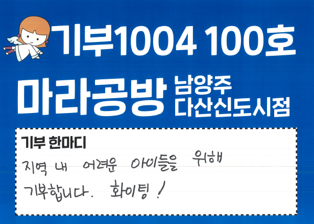 #기부1004프로젝트 #100번째기부천사 #정기기부 #서부희망케어센터 #마라공방 #남양주다산신도시 #나눔은일상이됩니다 #착한가게