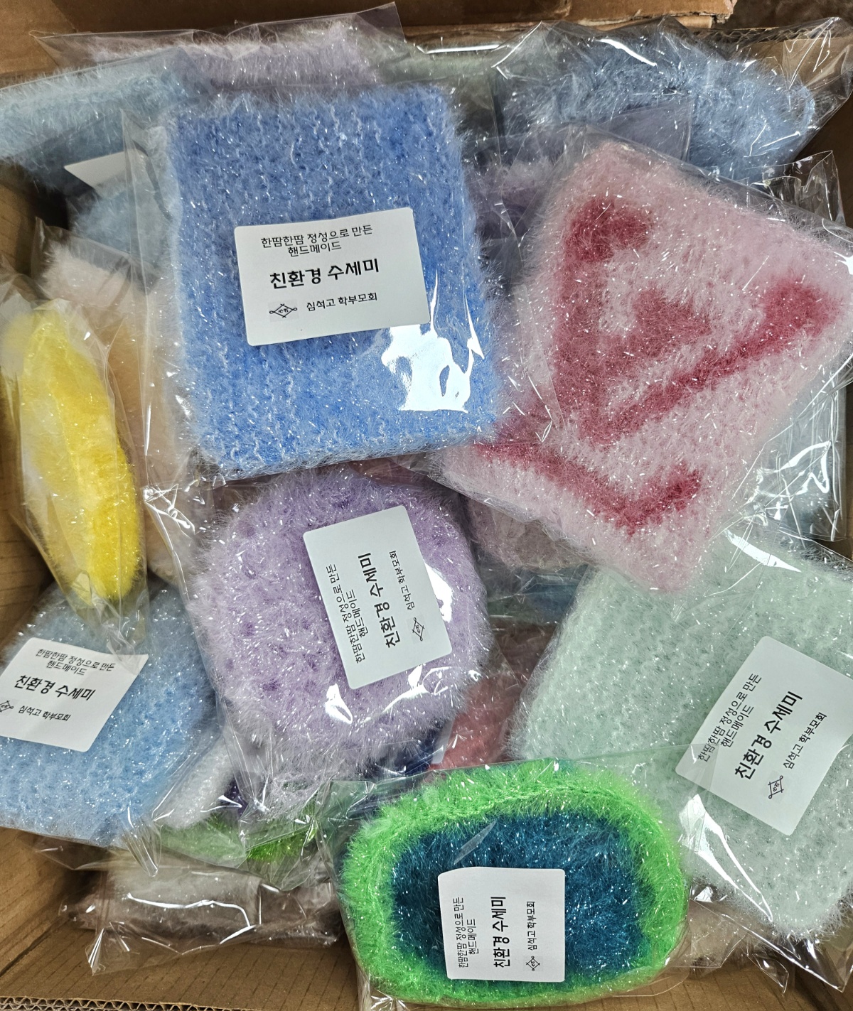 작년에 이어 올해도 정성껏 손뜨개한 친환경 수세미 470개를 후원해주셨는데요,