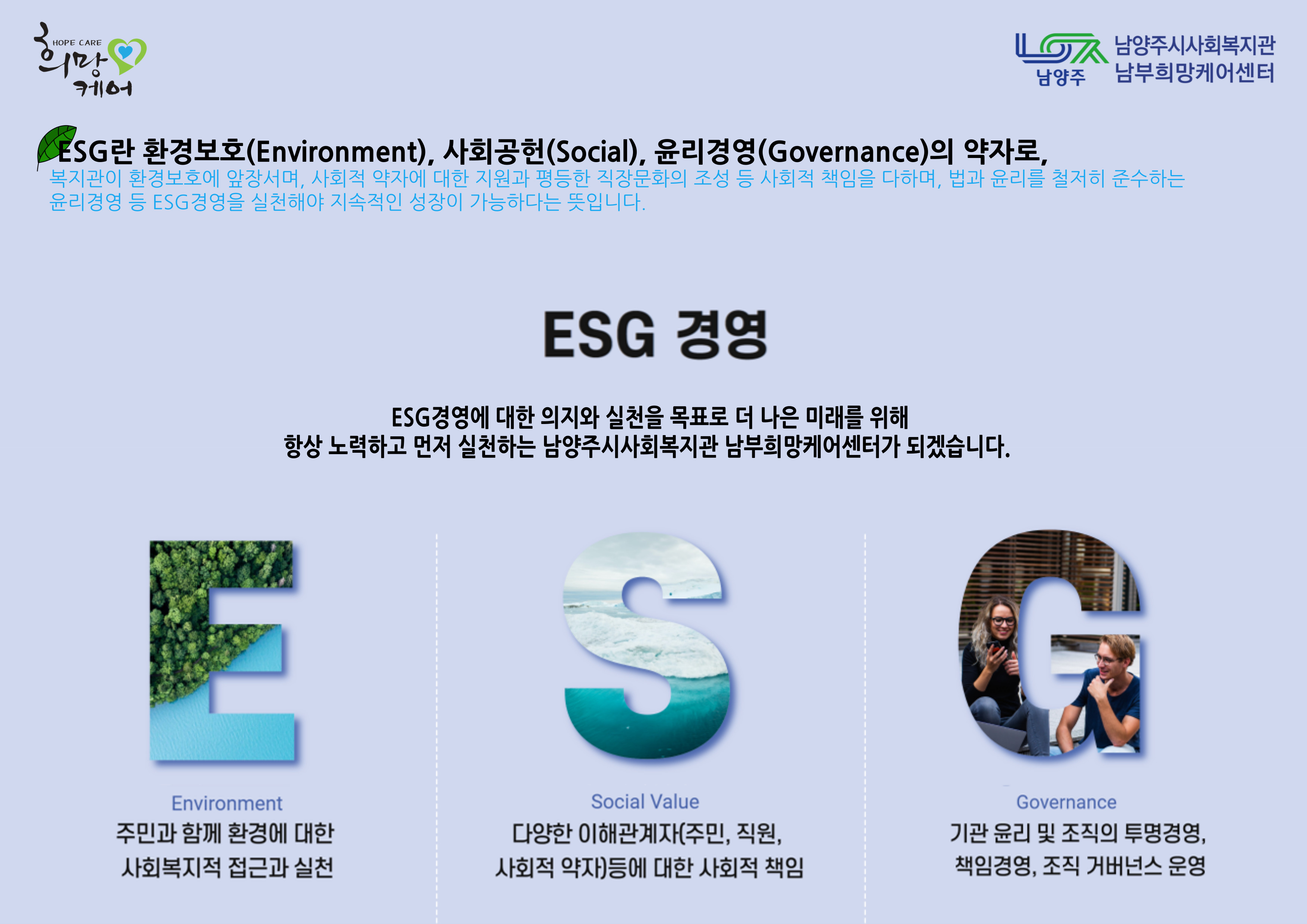 남부희망케어센터 [남부희망케어센터] 모두가 함께하는 지속가능한 복지-남부희망케어센터의 ESG 경영실천