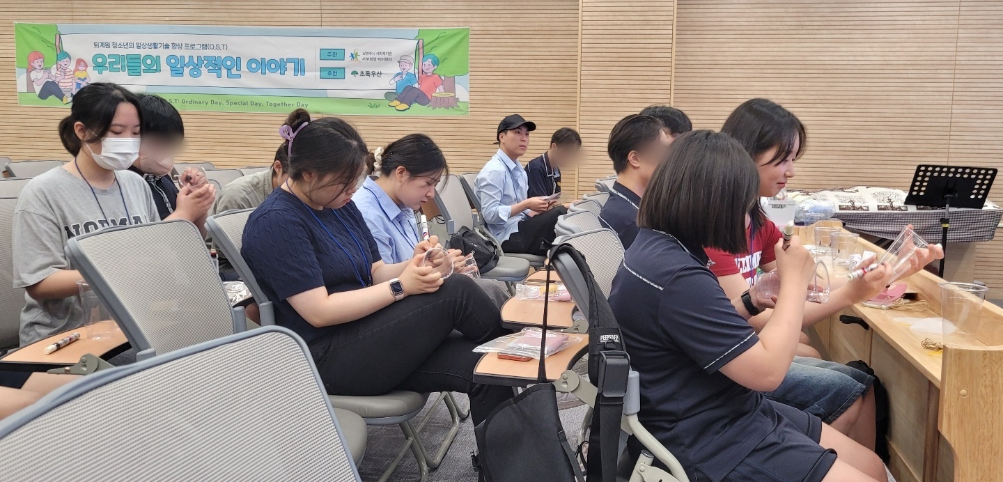 정리수납 교육이 진행되는 동안 삼육대학교 봉사자들이 프로그램 보조교사로 협력하였습니다.