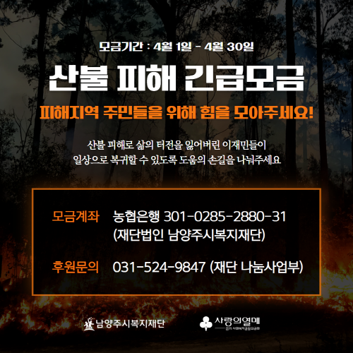 남부희망케어센터 [남부희망케어센터] 영남지역 산불 피해 지원 긴급 모금 캠페인