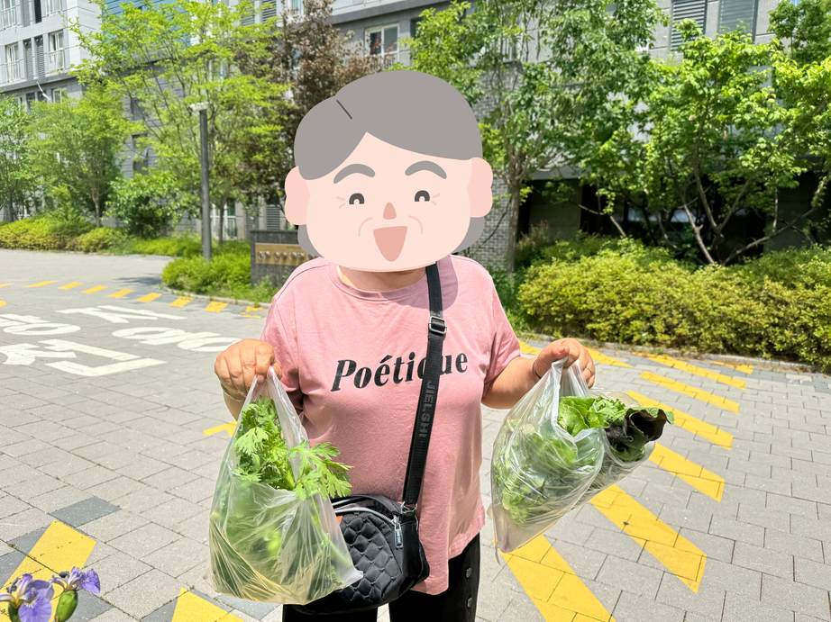 직접 키운 상추를 맛보고 이웃에게도 나눠줄 생각에 기뻐하시던 주민분들!
