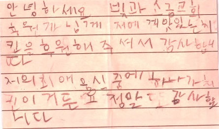어머님은 아이가 쑥스러움이 많아서 남에게 편지를 잘 안쓰는 편인데