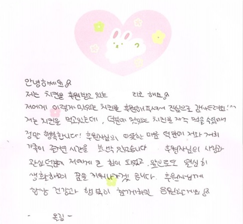 남학생이 쓴 편지인데 후원자님께 감사한 마음을 담아 섬세하게 잘 썼네요.
