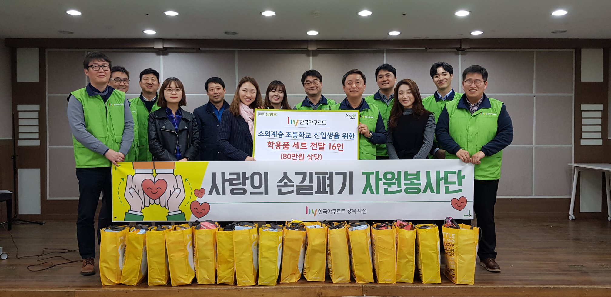 서부희망케어센터 한국야쿠르트 '사랑의 손길펴기 자원봉사단' 신입생을 위한 학용품 세트 전달