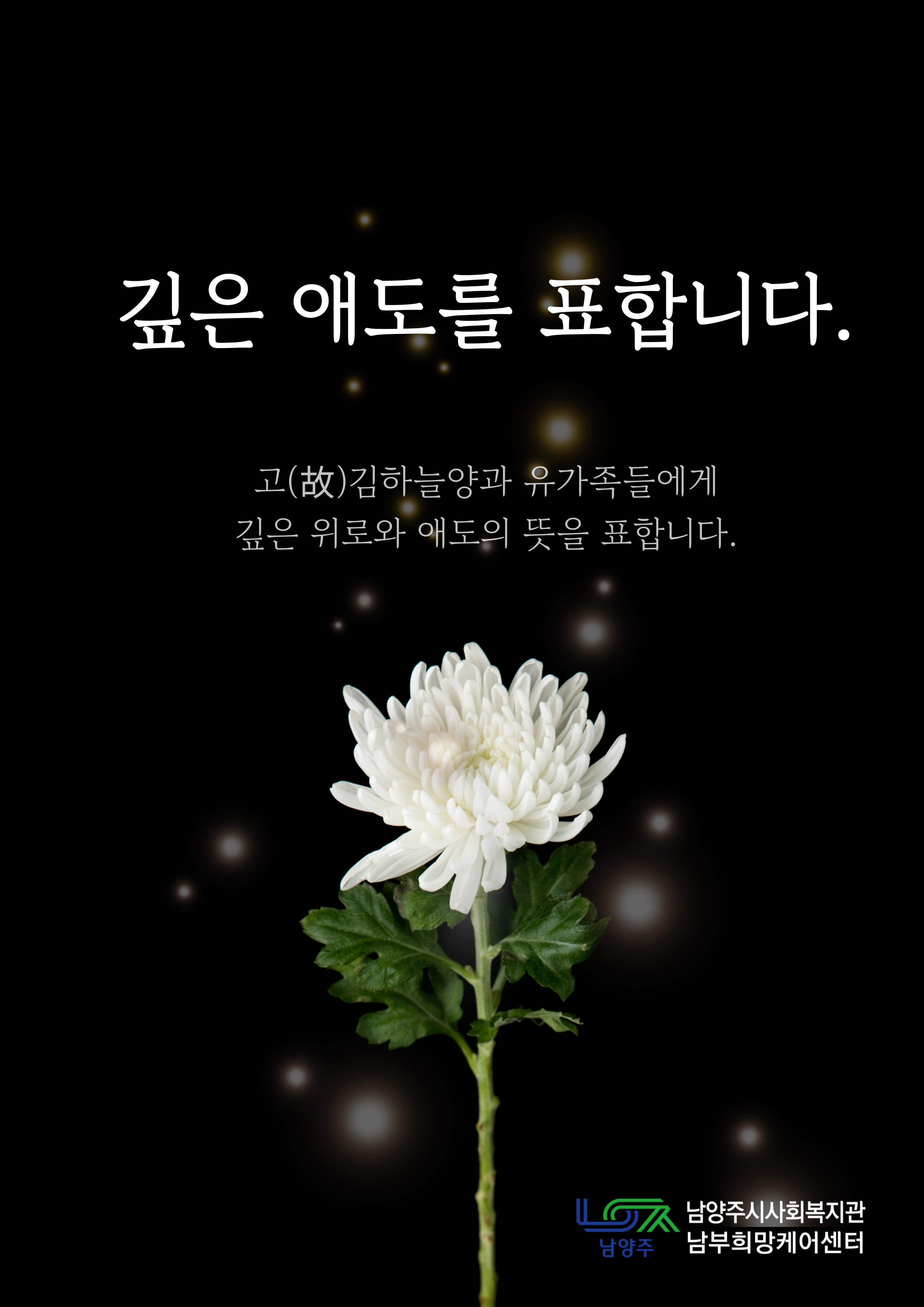 남부희망케어센터 [남부희망케어센터] 2025.02.10. 하늘의 별이 된 고(故)김하늘양, 삼가 고인의 명복을 빕니다.