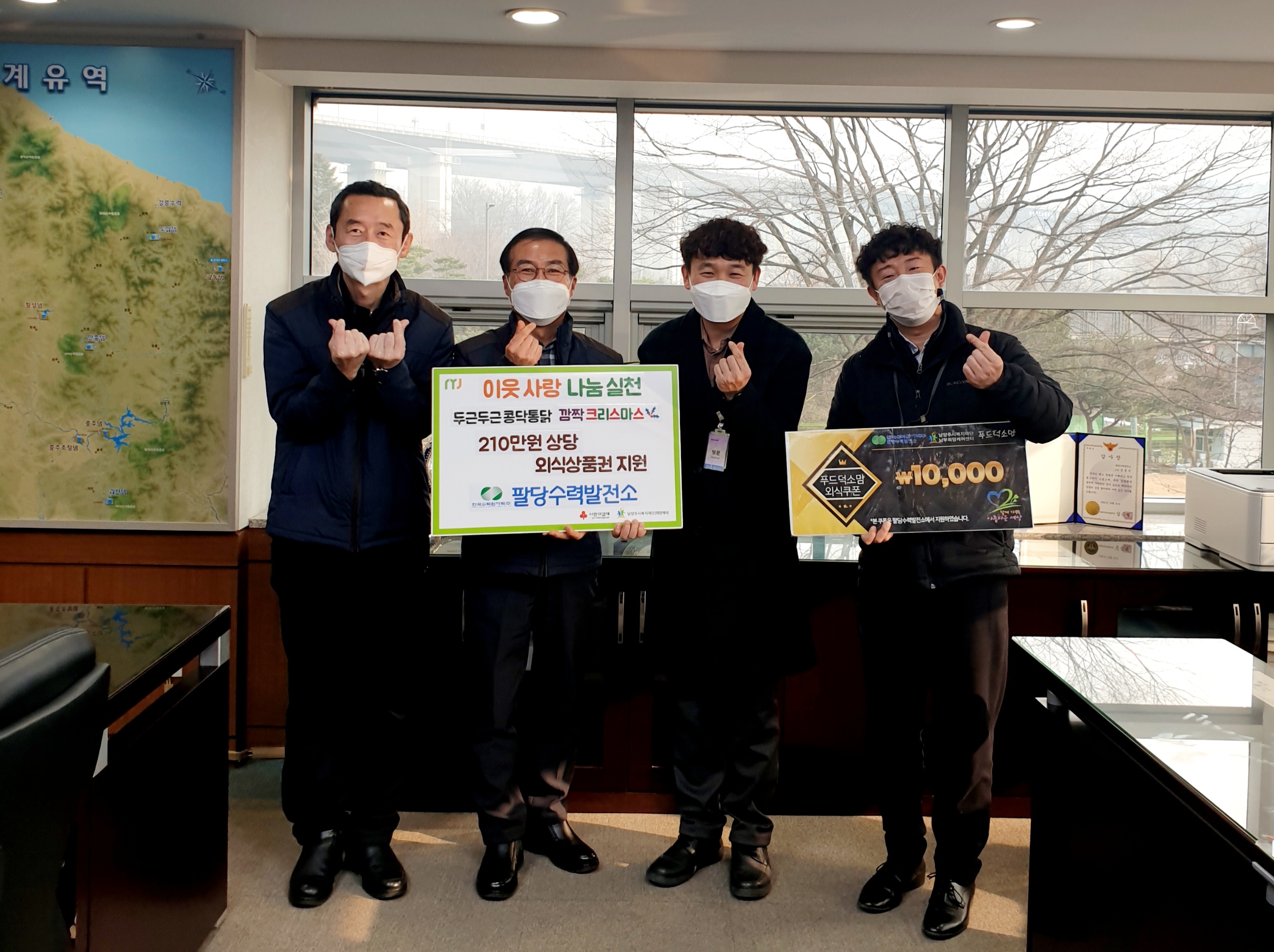 한수원㈜팔당수력발전소(소장 김종식)는 지난 21일 취약계층 아동을 위한 ‘두근두근 콩닥통닭 깜짝 크리스마스 나눔’과 관련해 후원금 210만원을 남양주시사회복지관 남부희망케어센터(센터장 김기수)에 기탁해주셨습니다.