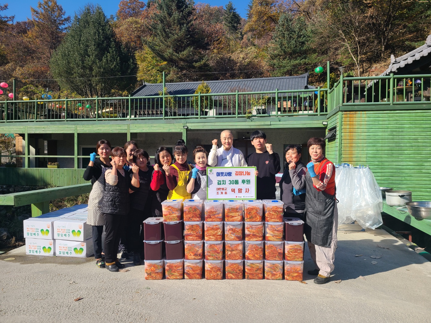 우리 센터가 위치한 와부읍에 있는 대한불교조계종 덕암사(도림 주지스님)는 지난 5일(토)에 직접 만든 총각김치 30통을 후원해주셨습니다. 총각김치는 덕암사 신도들이 손수 양념을 만들어 버무리고 건강에 좋은 10가지가 넘는 약재들을 넣어 만들었다고 하셨어요! 이 김치들은 관내 북한이탈주민을 포함한 지역 내 취약계층에게 전달해달라는 말씀이 있으셔서 잘 전달하려고 합니다! 덕암사 도림 주지스님은 “좋은 사람들과 함께 좋은 음식을 만들었다. 최선을 다해 만든 만큼 모두가 맛있고 행복하게 먹고 좋은 기운과 마음이 잘 전달됐으면 좋겠다.”라며 “덕암사는 앞으로도 지역사회 이웃들이 행복해질 수 있도록 노력하겠다.”라고 말씀해주셨습니다. 한편, 덕암사는 올여름 열무김치 후원에 이어서 김장철을 맞아 소외된 이웃들에게 손수 만든 김치를 전달하고 있으며, 지난 2013년부터 남부희망케어센터와 함께 지속적으로 후원 활동을 이어나가고 계신답니다!!