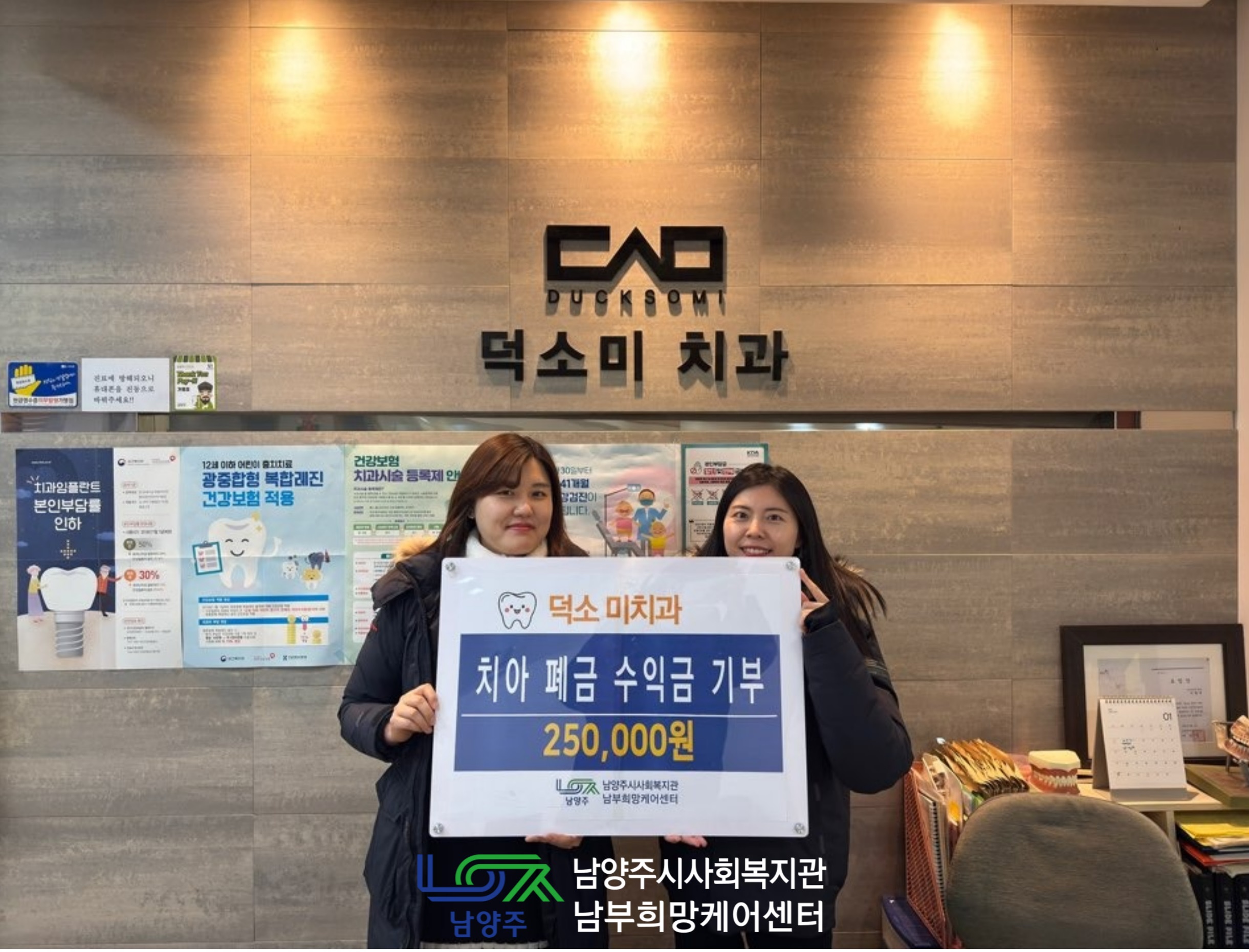 남부희망케어센터 [남부희망케어센터] 남양주시 덕소미치과, 치아 보철 폐금 수익금 기부