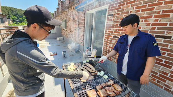 특히 오늘은 입주자 분께서 도와주셔서 함께 고기를 구웠는데요.