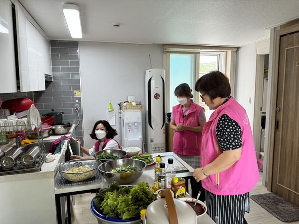 홀로 거주하시는 입주자 분들이 평소 자주 드시지 못하는 메뉴로 선정하여 느티나무봉사단(김채린 단장)에서 맛있는 고기와 국수를 준비해주셨습니다~