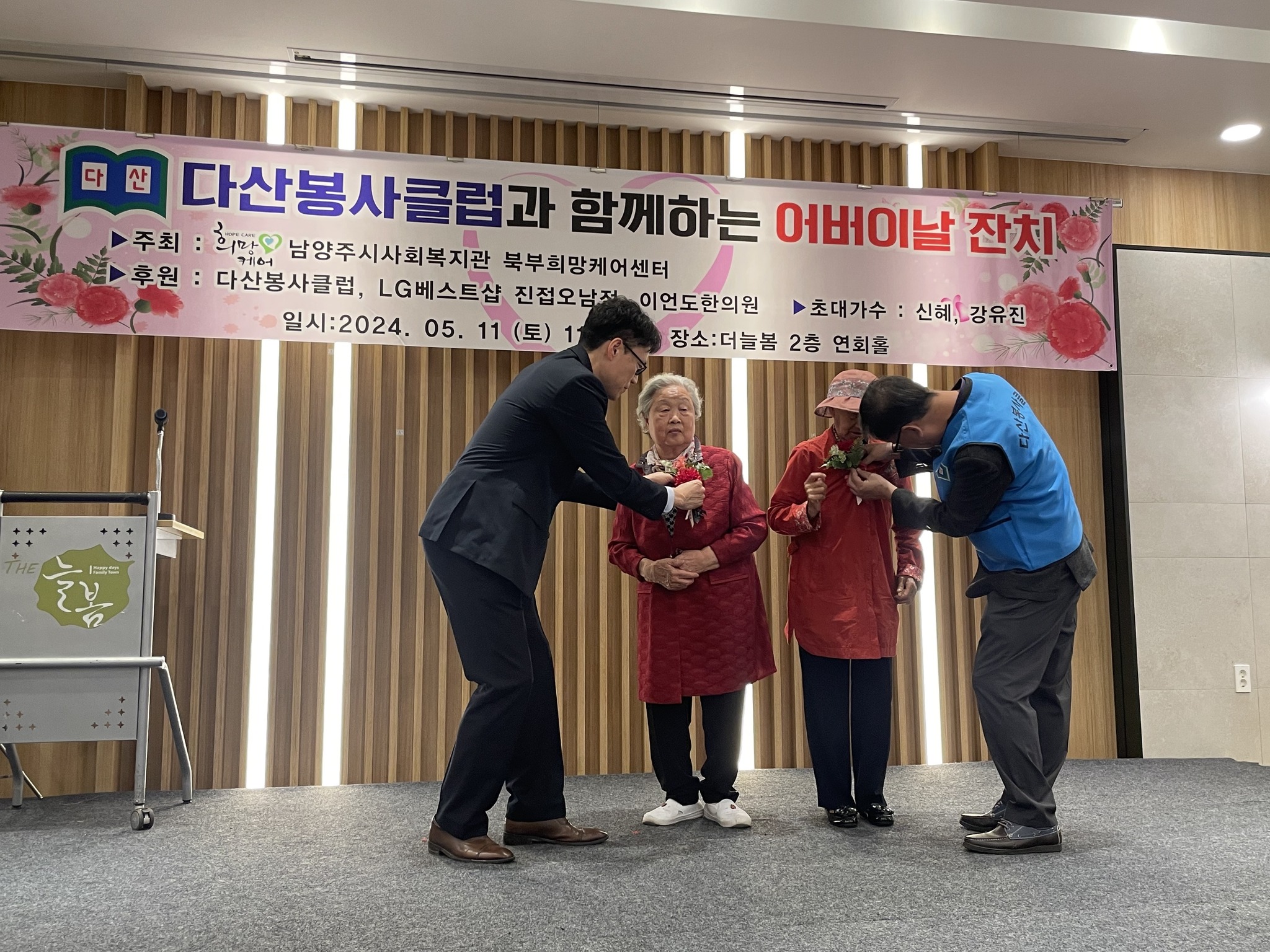 지난 11일(토) 북부희망케어센터는 다산봉사클럽(회장 장효재)과 함께 어버이날 잔치를 진행하였습니다.