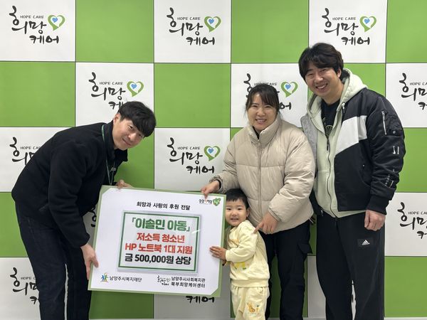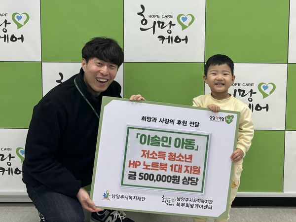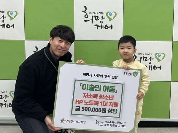진접읍 소재 아이티매니저(대표 이승건)에서 노트북 1대를 남양주시사회복지관 북부희망케어센터에 전달해주셨습니다.