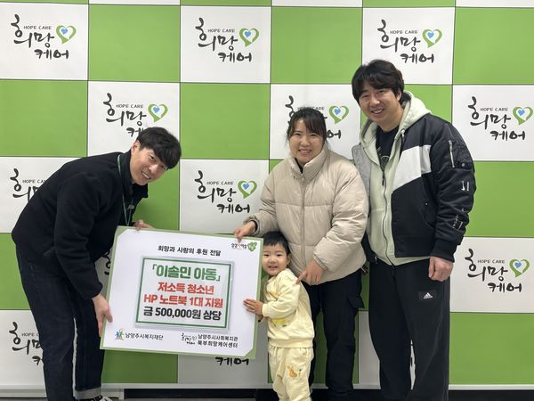 이승건 대표님은 올해 2월 23일부터 3월 7일까지 북부희망케어센터가 해피빈에서 진행한 학대로 상처받은 아이를 위한 노트북, 책상 구입비 지원 모금을 보고 아들의 이름으로 노트북을 기부해주셨습니다.