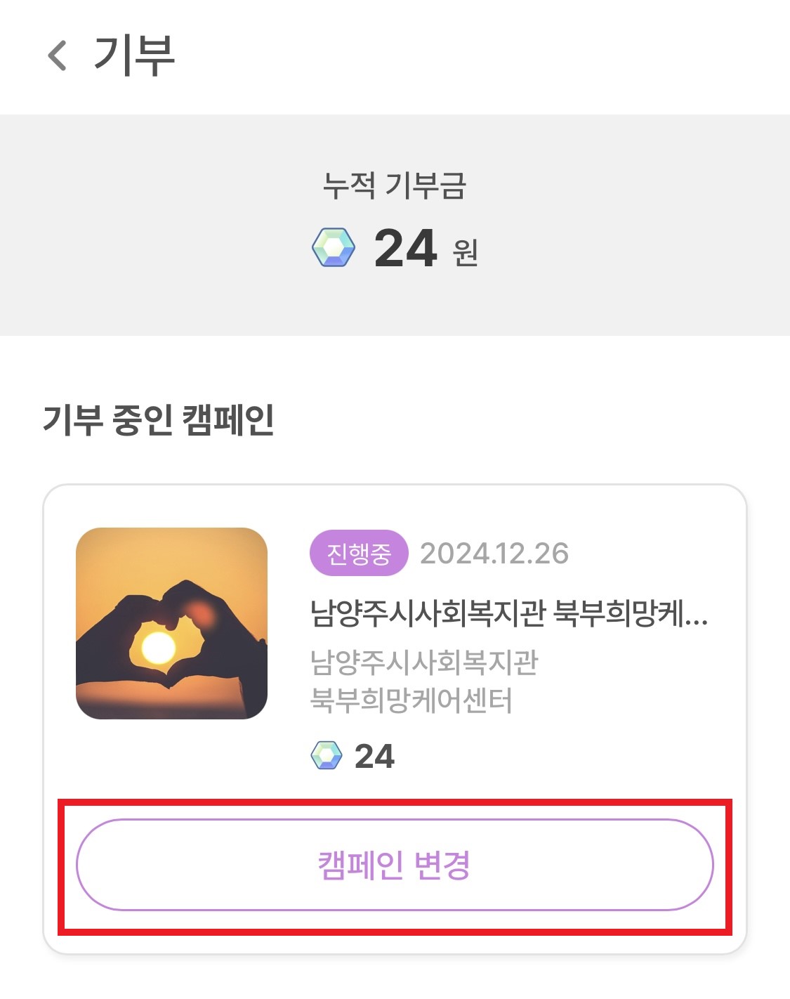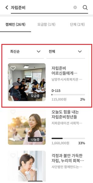 2. 초기화면 기부중인 캠페인 클릭