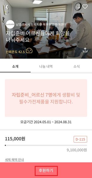 북부희망케어센터 자립준비 어르신들을 위한 온라인 모금 진행 (24.05.08)