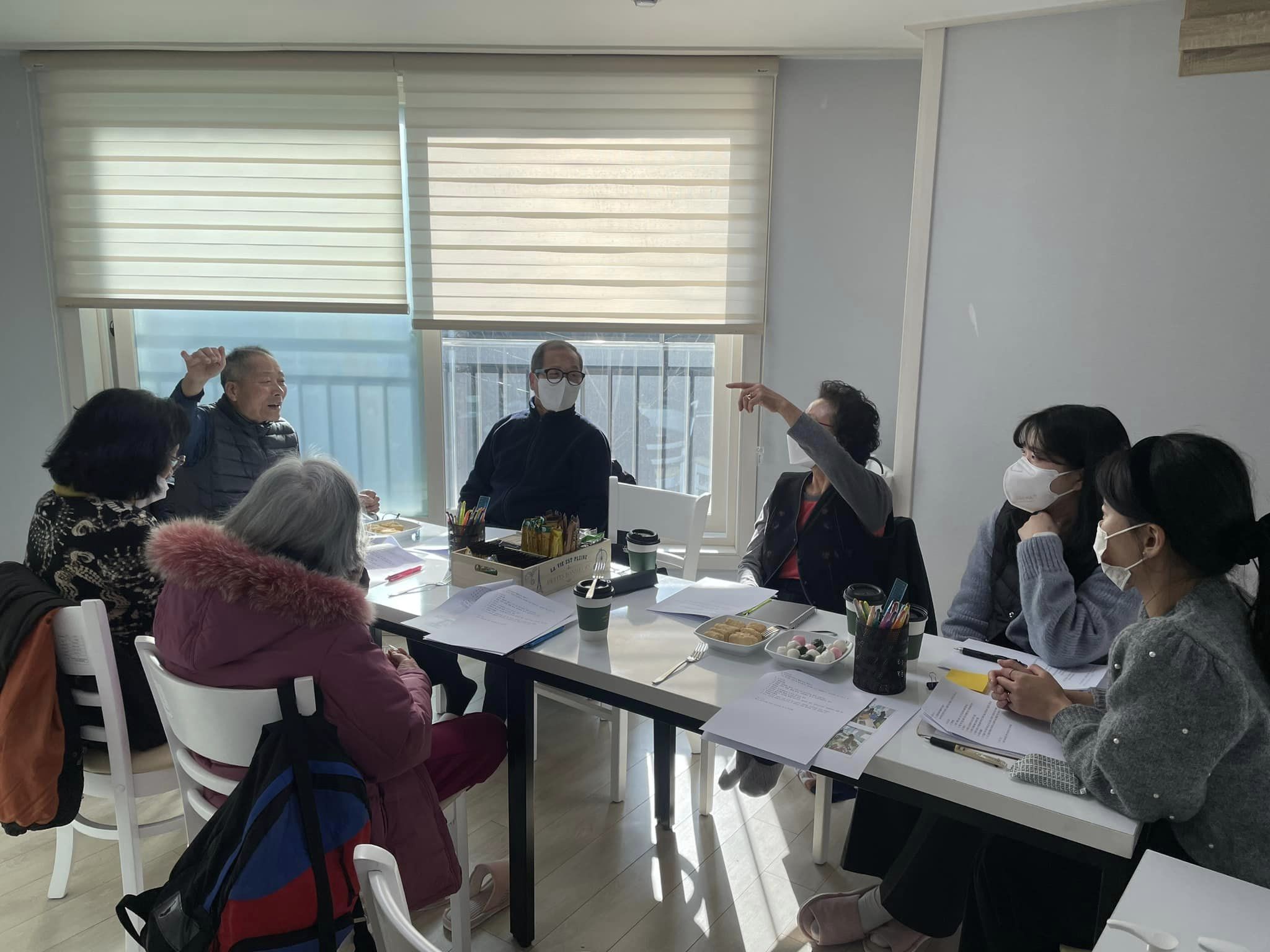 안녕하세요 남양주시사회복지관 북부희망케어센터(센터장 전정수)입니다. 12월 2일 (금) 북부희망케어센터에서는 남양주시 진접노인참여나눔터 1차 정기회의를 진행하였습니다. 어르신들 간 얼굴을 마주하고 서로의 안부를 묻는 것을 시작으로 프로그램, 활동 수칙 정하기, 임원 선출 등 향후 사업의 진행 활동에 대해 논의를 하는 시간을 가졌습니다. 박수복 어르신은 "노인은 늙고 병들어가는 존재라고만 생각했었는데 나눔터 회원이 되고, 하고싶은 것들이 많아졌어요. 서로 상부상조하며 잘 지내겠습니다."라며 첫 회기 참여소감을 전해주셨습니다. 남양주시 진접노인참여나눔터는? 노인이 서로 돕는 공동체를 형성하며 자조모임을 구성하고, 지역사회의 참여와 나눔활동을 실천하며 건강한 어르신으로써의 역할을 수행할 수 있도록 지지하는 노인중심의 사업입니다.