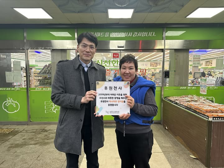 모두가 함께하는 나눔과 아름다운 지역사회를 만들기 위해 북부희망케어센터와 함께 해주시는 하나마트 양지점 백종현 후원천사님께 깊은 감사를 드립니다.