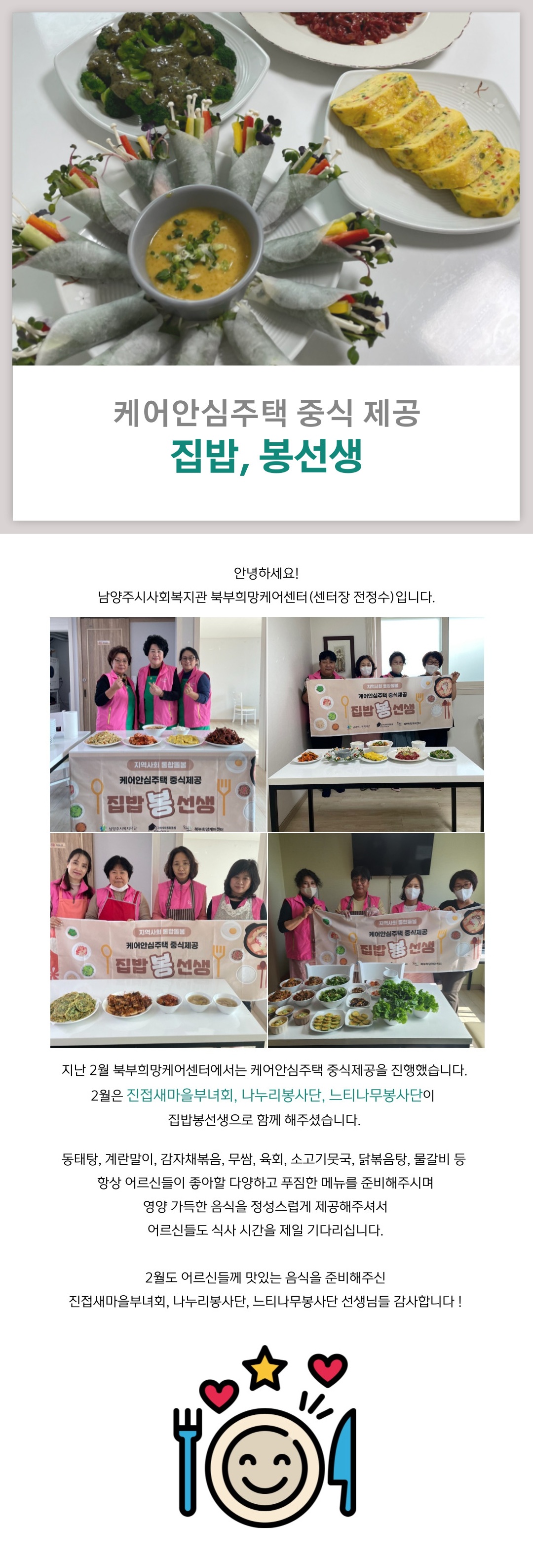 북부희망케어센터 북부희망케어센터 / 케어안심주택 중식제공 집밥 봉선생 진행 등록일자 2023-03-10 조회 251 내용 . 첨부파일 케어안심주택 중식제공 집밥, 봉선생.jpg [ Size : 722KB, Down : 77 ] 미리보기 다운로드 목록보기