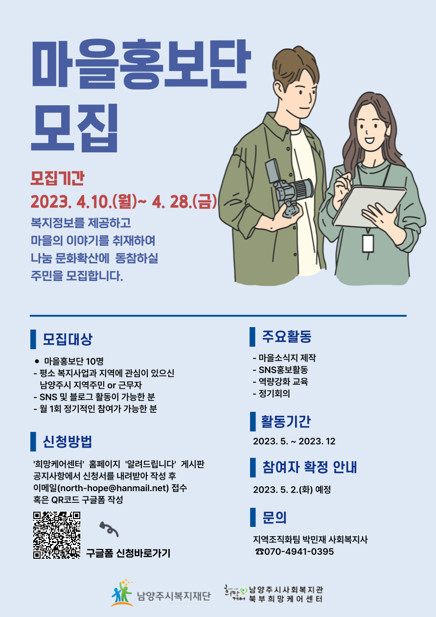 마을홍보단 : 지역조직화팀 박민재 사회복지사(tel.070 4941 0395)