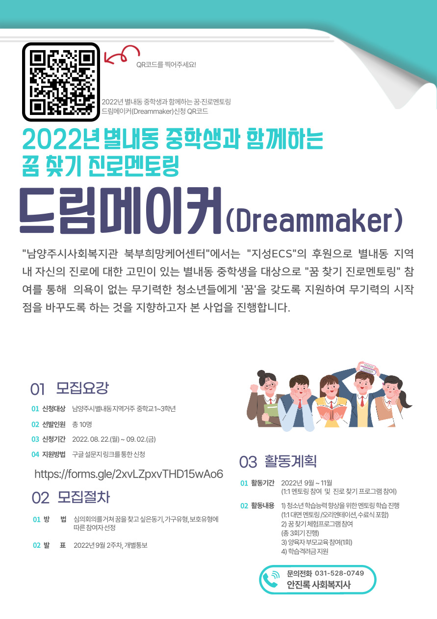 [별내동 중학생과 함께하는 꿈 찾기 진로멘토링_드림메이커 신청자 모집]