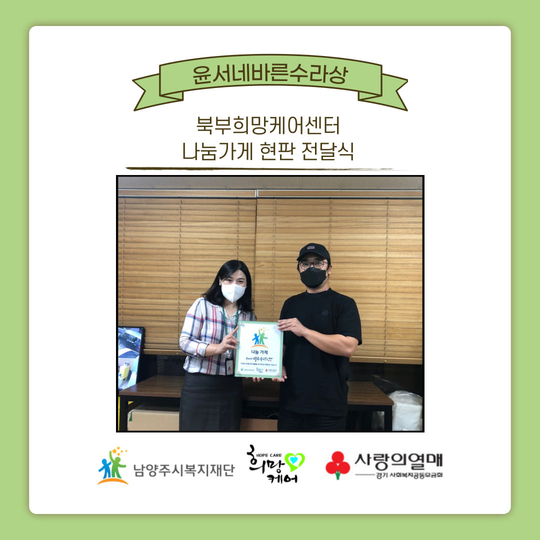 북부희망케어센터 북부희망케어센터, 윤서네바른수라상 나눔가게 현판 전달