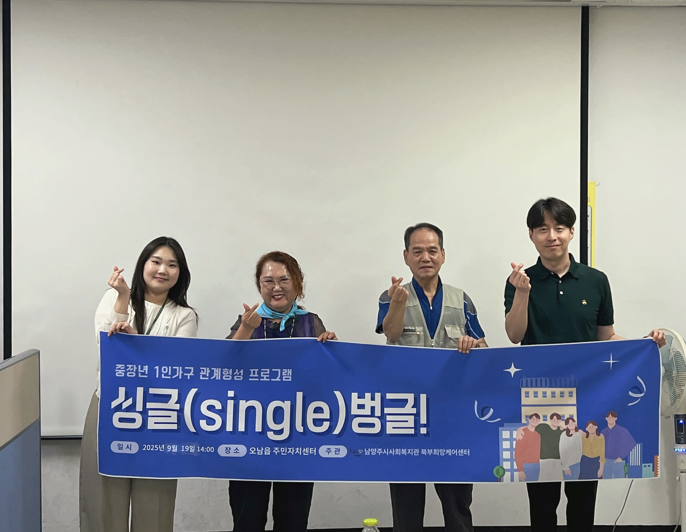 북부희망케어센터 [북부희망케어센터] 중장년1인가구 생애설계 프로그램 '싱글(single)벙글' 사업설명회 등록일자 2025-09-19 조회 54 내용 주민 여러분 안녕하세요~~! 북부희망케어센터(센터장 전정수)에서 오늘의 소식 전합니다!오늘은 1인가구 프로그램의 첫 만남을 가졌습니다. 비가 오는 궂은 날씨에도 함께해주신 분들과 사업에 대해 이야기를 나누고, 감정컬러카드를 활용해 서로의 마음을 소개하는 시간을 가졌습니다.참여자분들은 “앞으로의 만남이 기대된다”는 소감을 다양한 컬러카드를 통해 이야기해주셨습니다.다음 회기에는 더 많은 참여자분들과 함께 희망찬 여정을 이어가겠습니다. ♥ 첨부파일 1.jpg [ Size : 1.1MB, Down : 25 ] 미리보기 다운로드 2.jpg [ Size : 4.01MB, Down : 27 ] 미리보기 다운로드 3.jpg [ Size : 3.61MB, Down : 30 ] 미리보기 다운로드 4.jpg [ Size : 3.14MB, Down : 26 ] 미리보기 다운로드 5.jpg [ Size : 2.47MB, Down : 24 ] 미리보기 다운로드 목록보기
