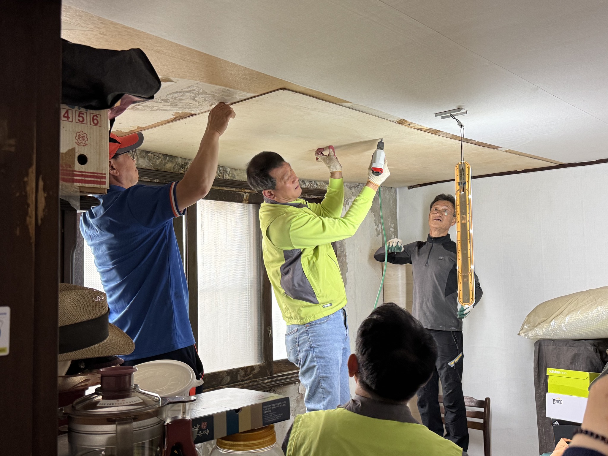 국제키와니스 남양주클럽에서는 방 천장을 나무 합판으로 보수하였으며 곰팡이 핀 벽지를 제거하고 도배를 진행하였습니다.