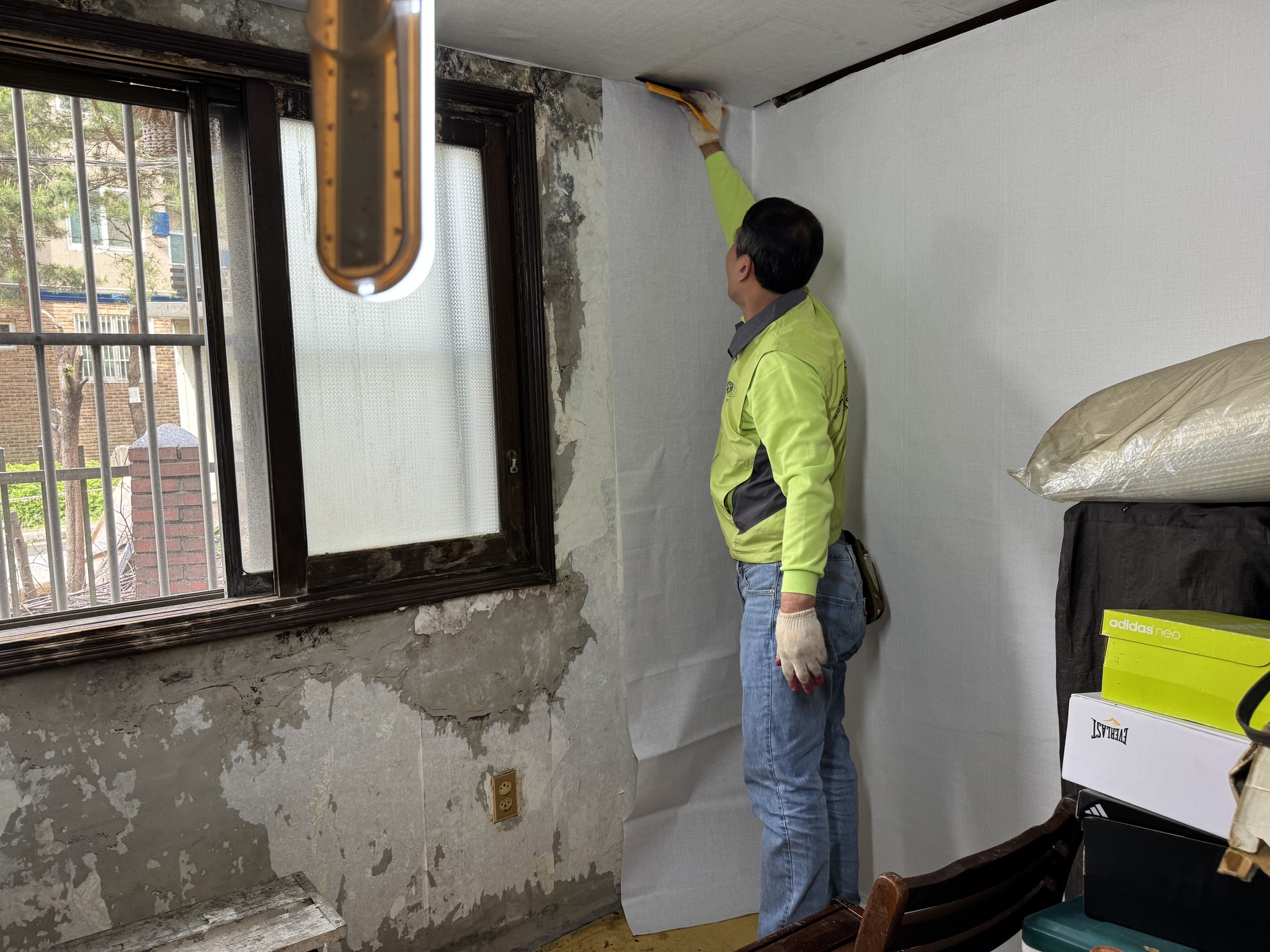 어르신은 혼자 노후된 주택에서 거주하고 있었으며 방 천장 누수가 있었으나 혼자 해결할 수 없어 그대로 방치된 상태였습니다. 누수공사는 완료되었으나 천장이 썩어가고 각종 벌레가 내부로 유입되었으며 특히 집 내부가 곰팡이 냄새로 인해 어르신의 건강이 우려되는 상황이었습니다.