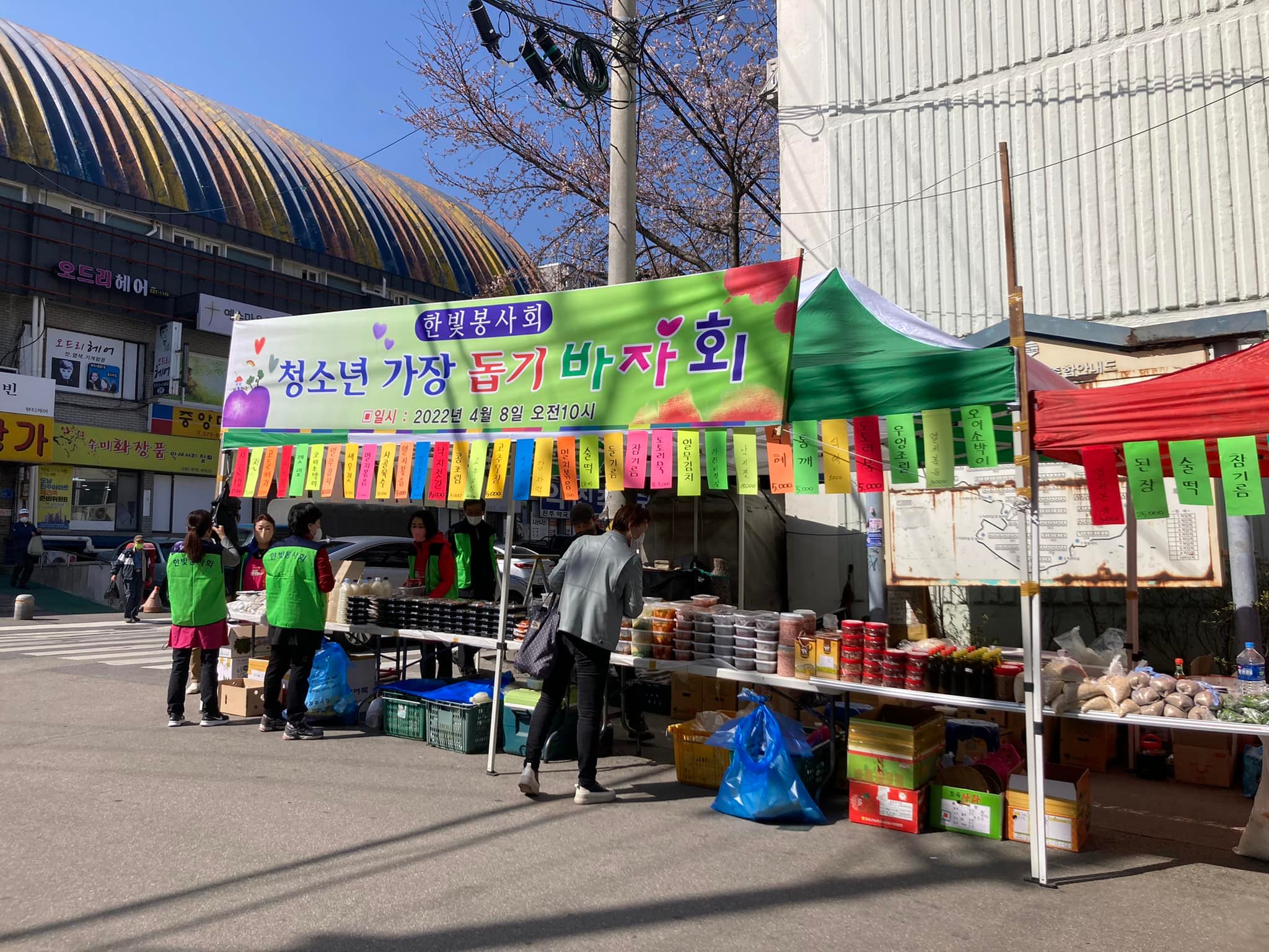 안녕하세요! 지난 4월 8일 한빛봉사회에서 일일반찬가게가 진행되었습니다! 오남읍 진주상가 앞에서 진행된 일일반찬가게에서는 한빛봉사회 회원님들이 직접 조리한 반찬, 식혜, 젓갈 등의 푸짐한 먹거리로 구성되었습니다. 특히 이번에 열린 반찬가게 수익금은 진접오남지역의 저소득 아동청소년들의 장학금으로 사용될 예정이라서 준비한 음식에 더욱 정성과 따뜻한 온기가 느껴지는 것 같습니다! 매년 이맘때쯤이면 오남읍 진주상가 앞에서 일일반찬가게가 진행되니 내년에도 많은 관심 부탁드립니다.