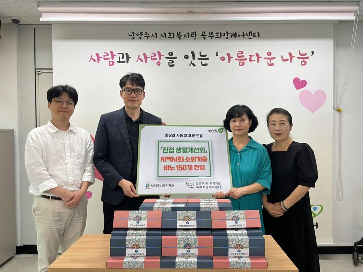 진접생활개선회는 꾸준히 북부희망케어센터에 식품, 생필품 등 지역주민에게 필요한 물품을 전달해주고 계십니다. 전달해주신 비누는 필요한 이웃에게 전달될 수 있도록 하겠습니다.