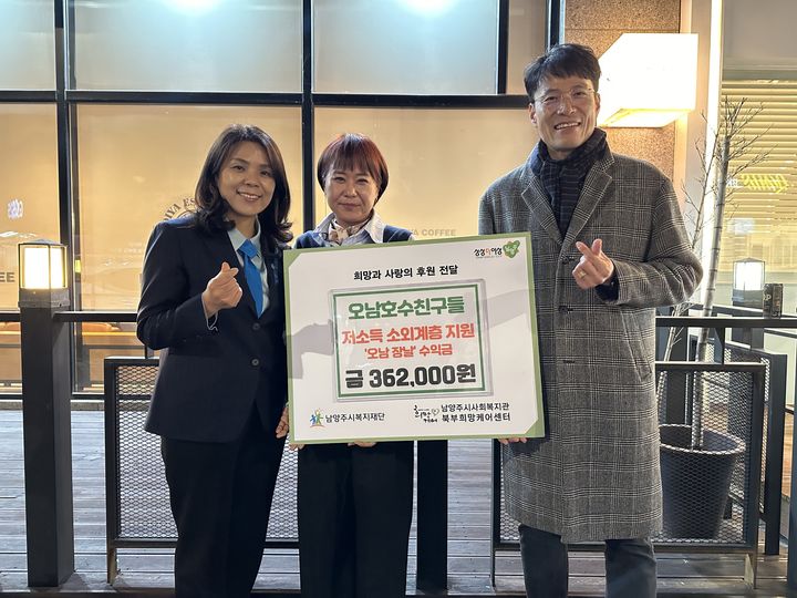 오늘은 오남호수친구들에서 저소득 소외계층 지원을 위한 수익금 362,000원을 남양주시사회복지관 북부희망케어센터(센터장 전정수)에 전달해주셨습니다!