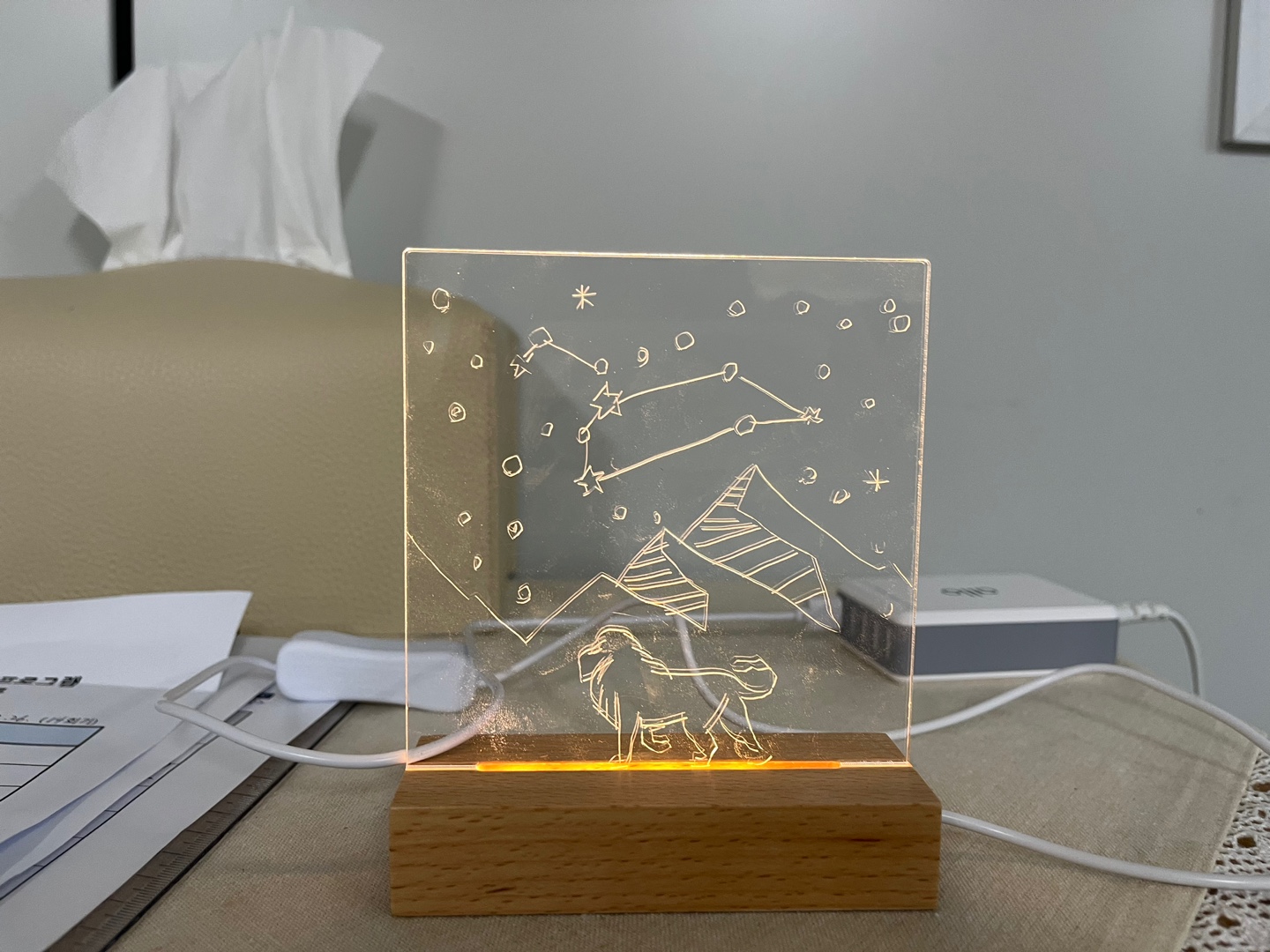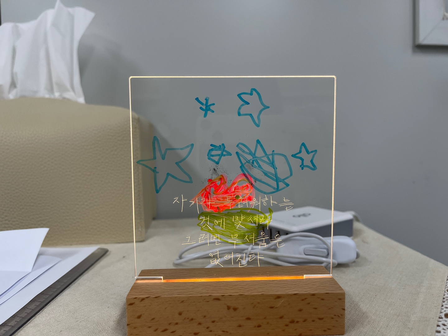 수업 마지막에는 자존감을 높이는 문구를 골라 아크릴 무드등 만들기를 하면서 자신의 자존감을 키우는 시간도 가졌습니다!