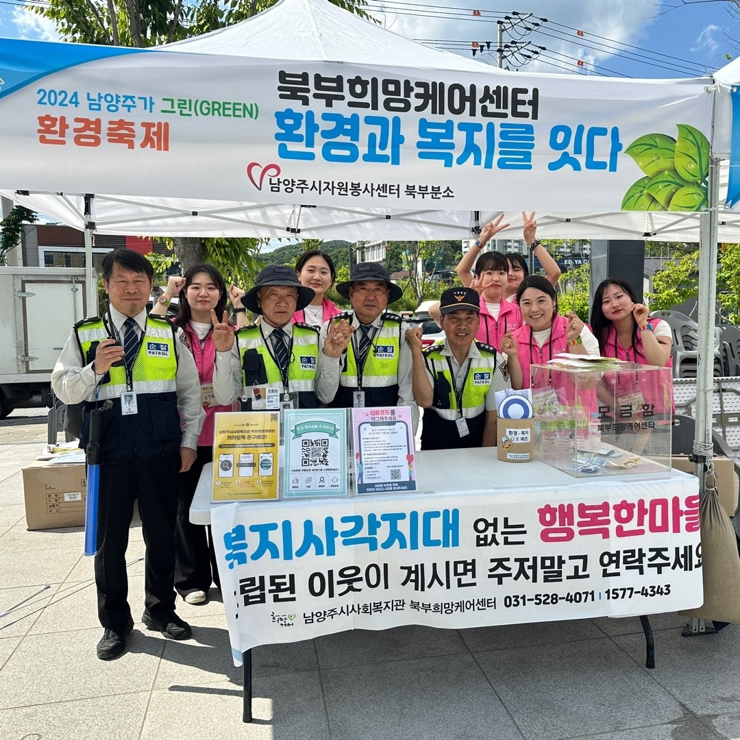 6/1(토) 북부희망케어센터에서는 남양주시자원봉사센터 북부분소(임미숙 분소장) 주최 '남양주가 GREEN 환경축제' 부스 운영에 참여하여 지역주민과의 소통창고를 마련하였습니다.