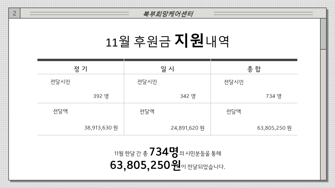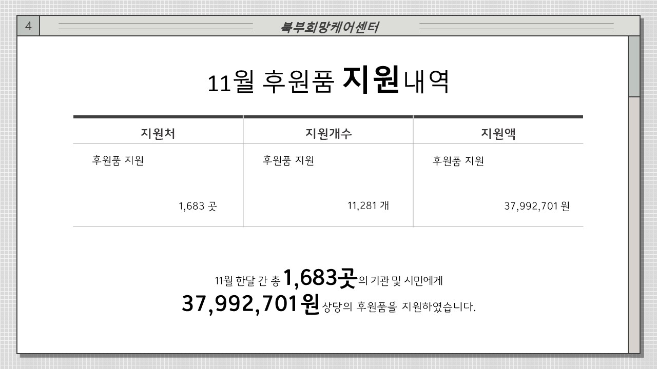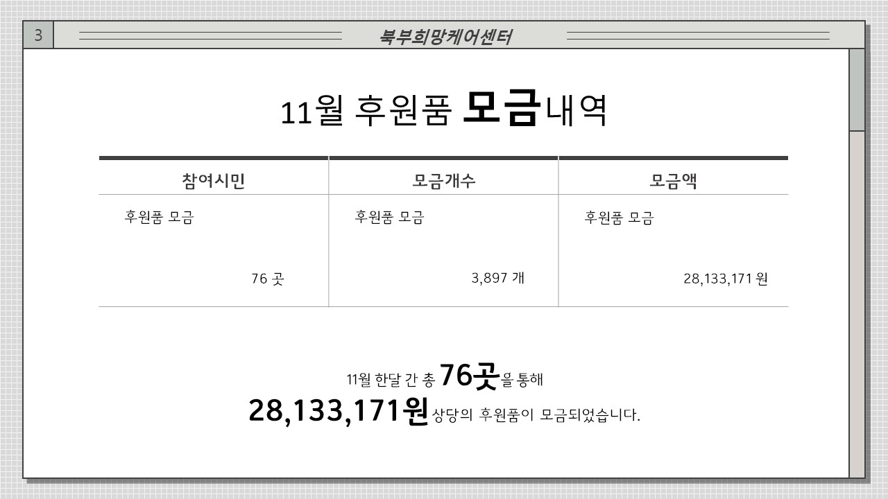 북부희망케어센터 북부희망케어센터, 11월 나눔현황 보고