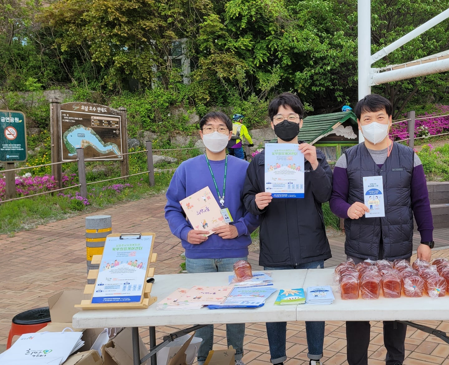 안녕하세요! 지난 4월 30일 토요일에 남양주시사회복지관 북부희망케어센터(센터장 전정수)는 NJ트로트심벌장구,북 남양주지회에서 주관하는 소년,소녀 가정을 돕기 위한 NJ트로트장구,북 공연에 함께하여 오남호수공원 공연장에서 부스 운영을 했는데요! 홍보 부스를 운영하면서 공연을 관람하는 지역주민들에게 다가가, 북부희망케어센터의 홍보물을 나누어 드리며 센터와 활동 내용을 소개해드렸습니다. 많은 지역주민들이 홍보부스로 찾아와 주셨고, 지역주민들의 다양한 이야기를 듣고 나눌 수 있었던 값진 시간이었습니다. 특히 대면하여 듣는 지역주민들의 이야기는 더욱 생동감이 넘쳤고, NJ트로트장구, 북 공연에 담긴 소년, 소녀 가장을 돕기 위한 따뜻한 의미는 지역주민들과 넘치는 정을 나눌 수 있었던 뜻깊은 하루였습니다.
